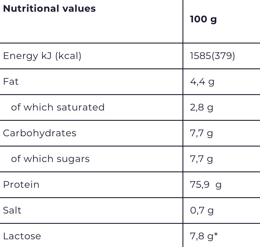 *Het product is lactosearm als het volgens de instructies met water wordt gemengd.