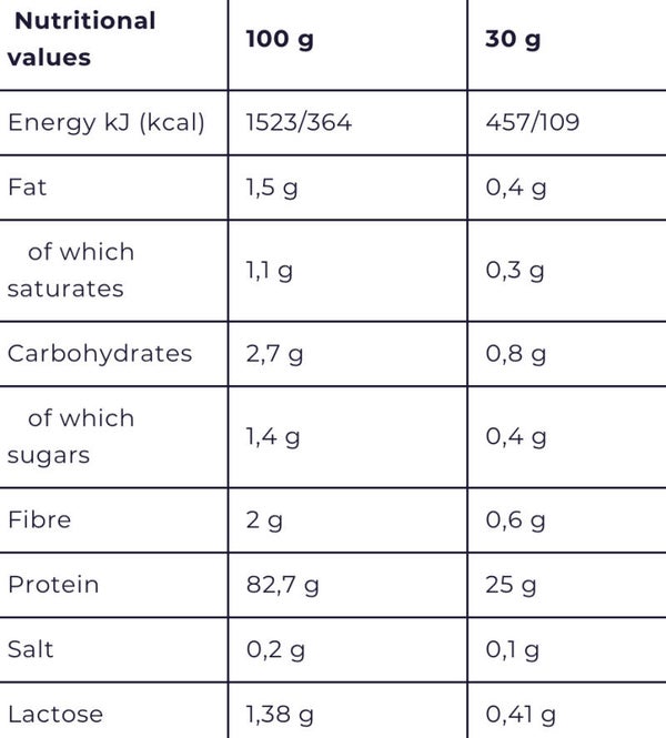 Meng 1 maatschep (30 g) met 250 ml koud water of melkdrank naar keuze in een shaker. Neem 1-3 porties per dag na de training en/of tussen de maaltijden door. Geschikt voor sporters en sporters als dagelijks eiwitsupplement. Het product kan een gevarieerd dieet en een gezonde levensstijl niet vervangen. Buiten bereik van kleine kinderen houden.