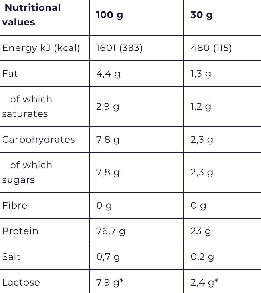 *Het product bevat weinig lactose als het volgens de instructies met water wordt gemengd.